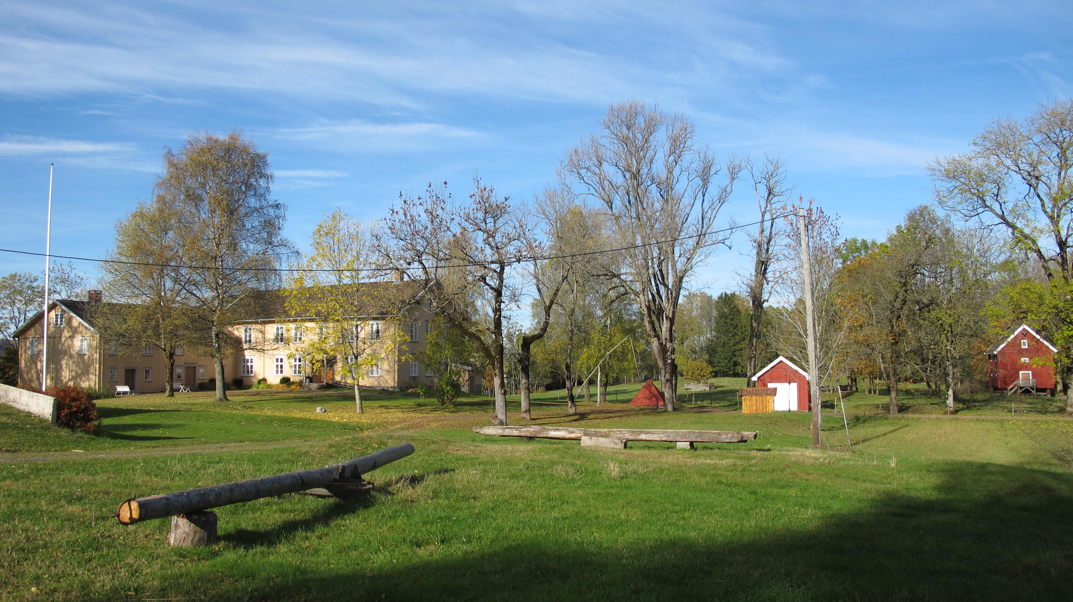Huset er bygd i tømmer i én etasje og er utvendig panelt. Stuen ligger i søndre del av bygningen. Midt i huset er en liten gang og et kjøkken med grue. På nordsiden var det en ved- og lagerbod som Munch senere innredet som gjesteværelse med et enkelt panel på veggene. Han innredet en liten entré og bygde veranda mot hagen. Interiøret var enkelt. I stuen, som også tjente som malerens soverom, stod det to store tresenger, et arbeidsbord, et gammelt klaffebord, hjørneskap og to lenestoler. I huset fantes en kiste som inneholdt alle brevene til Munch. Mange av hans personlige eiendeler finnes fortsatt i huset. Han bygde også et atelier like sydøst for bolighuset. Atelieret er senere revet og gjenoppsatt som kopi.