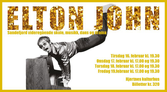 I perioden 16. - 19. februar vil Hjertnes fylles av talentfulle ungdommer som musikere, korister, solister og dansere. Musikalsk tilrettelegging, regi, koreografi, musikalsk innstudering og ledelse gjøres av den dyktige lærerstaben på avdelingen. Vi lover en storslått scene og elever med god og entusiastisk innlevelse. Dette vil gjøre forestillingen «Elton John» til en stor lokal kulturopplevelse!
